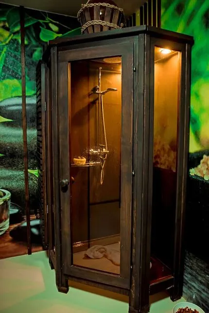 Не важно где, на улице или в помещении, душевые кабины из кедра будут смотреться стильно, богато и дарить аромат целебной древесины!