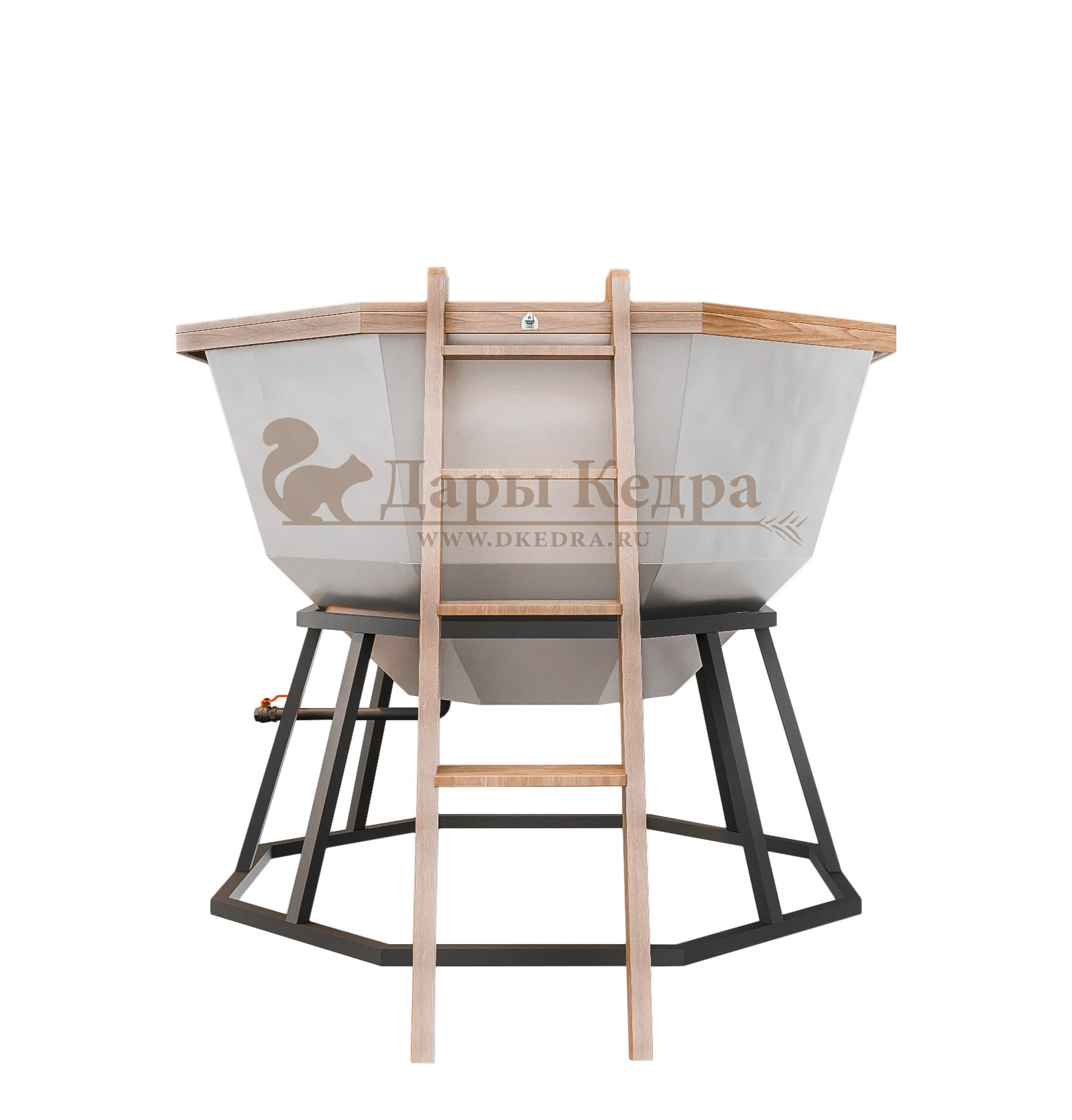 Прочная и удобная лестница из металла с обшивкой из кедра позволит комфортно подниматься и погружаться в воду (5 ступеней и площадка).