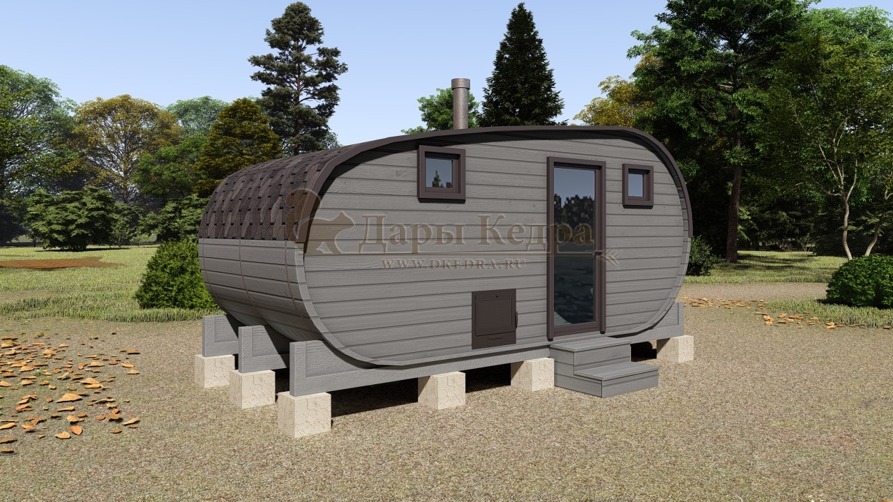 Баня-бочка «Танк» из кедра 5х2,2 метра (вариант 2)