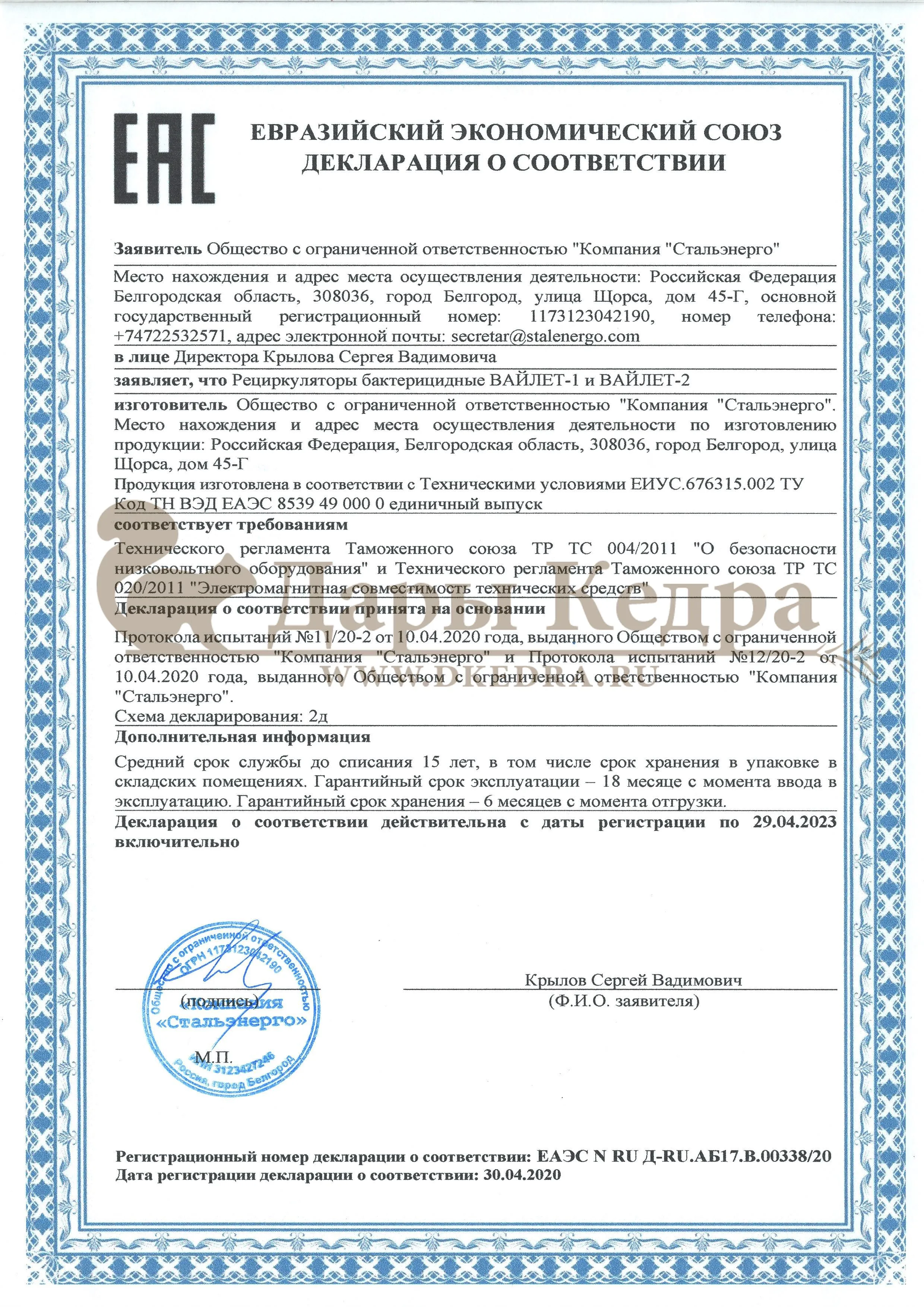 Рециркулятор бактерицидный ВАЙЛЕТ-1 предназначен для обеззараживания воздуха помещений в присутствии людей. Обеззараживание воздушного потока происходит в процессе его циркуляции через корпус, внутри которого размещены источники бактерицидного облучения.